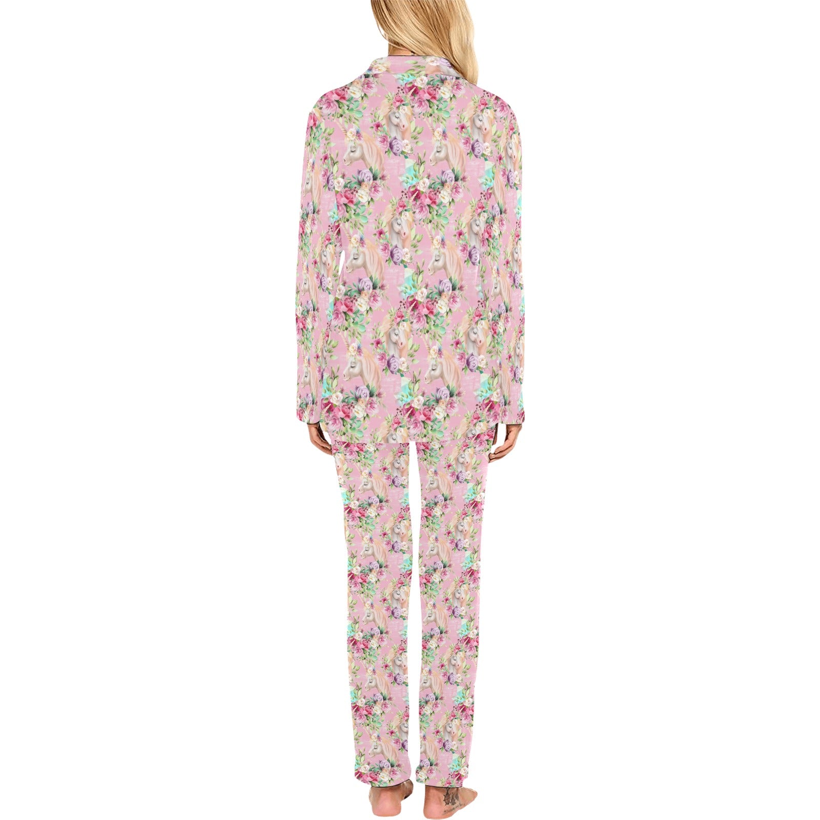Unicorn Princess with Rose Women's Long Pajama Set Made to Order Item. It is hand-cut and sewn just for your order! This process starts as soon as your order is placed and may have a processing time of 5-9 business days before it ships.