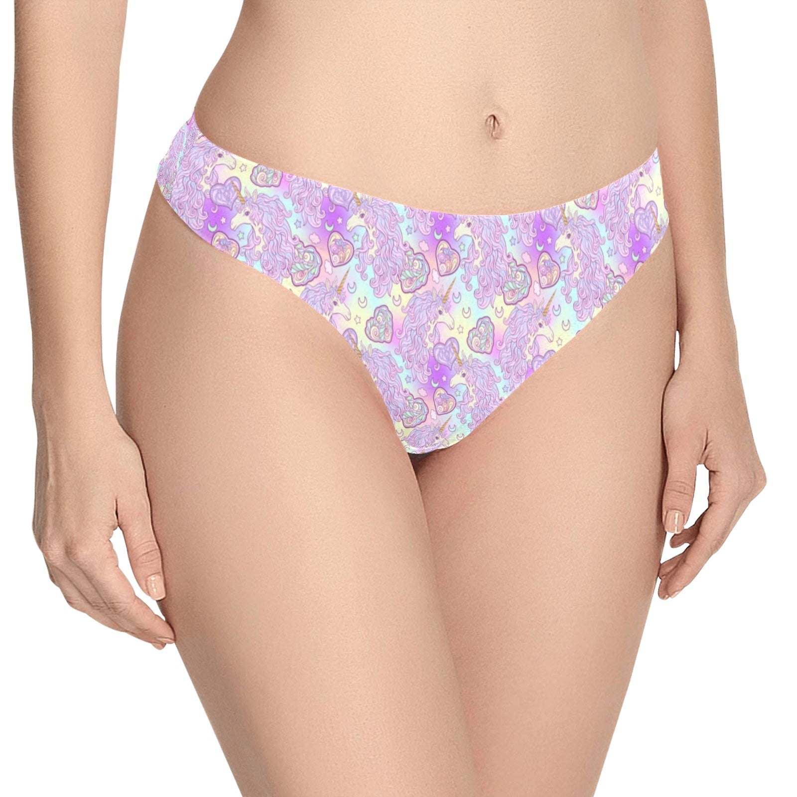 Unicorn Rainbow Star Heart Print Women's Thongsis custom-made-to-order and handcrafted to the highest quality standards.