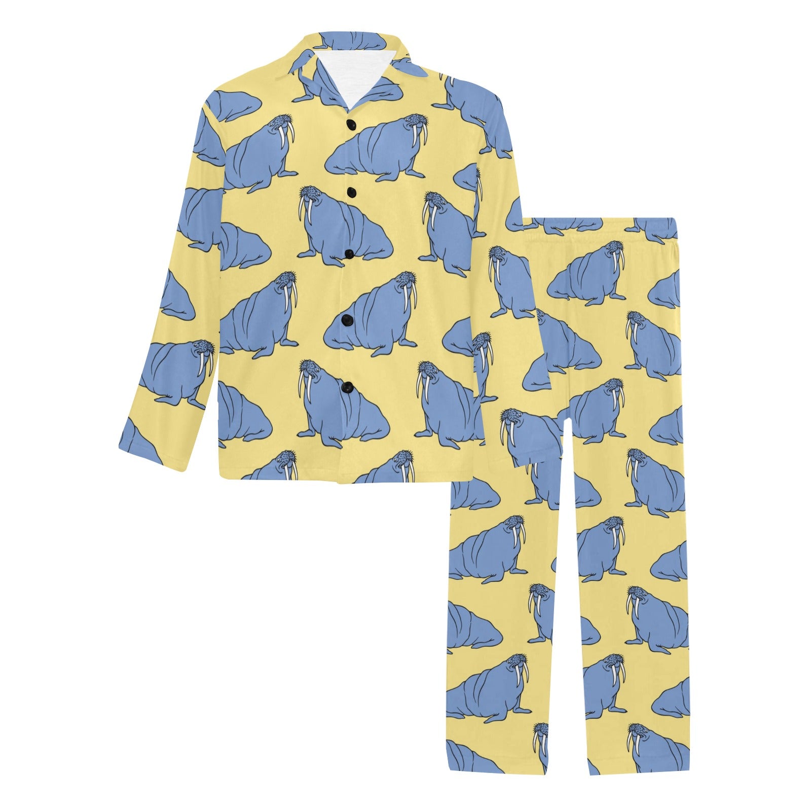 Walrus Pattern Print Design 02 Men's Long Pajama Set custom-made-to-order and handcrafted to the highest quality standards.