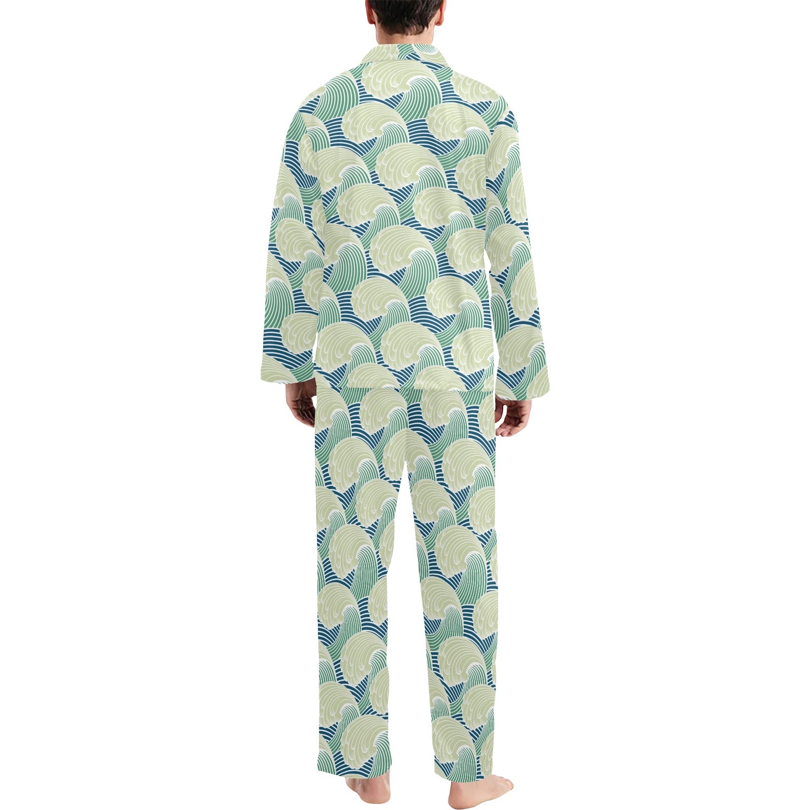 Wave Japan Style Print Design LKS302 Men's Long Pajama Set
