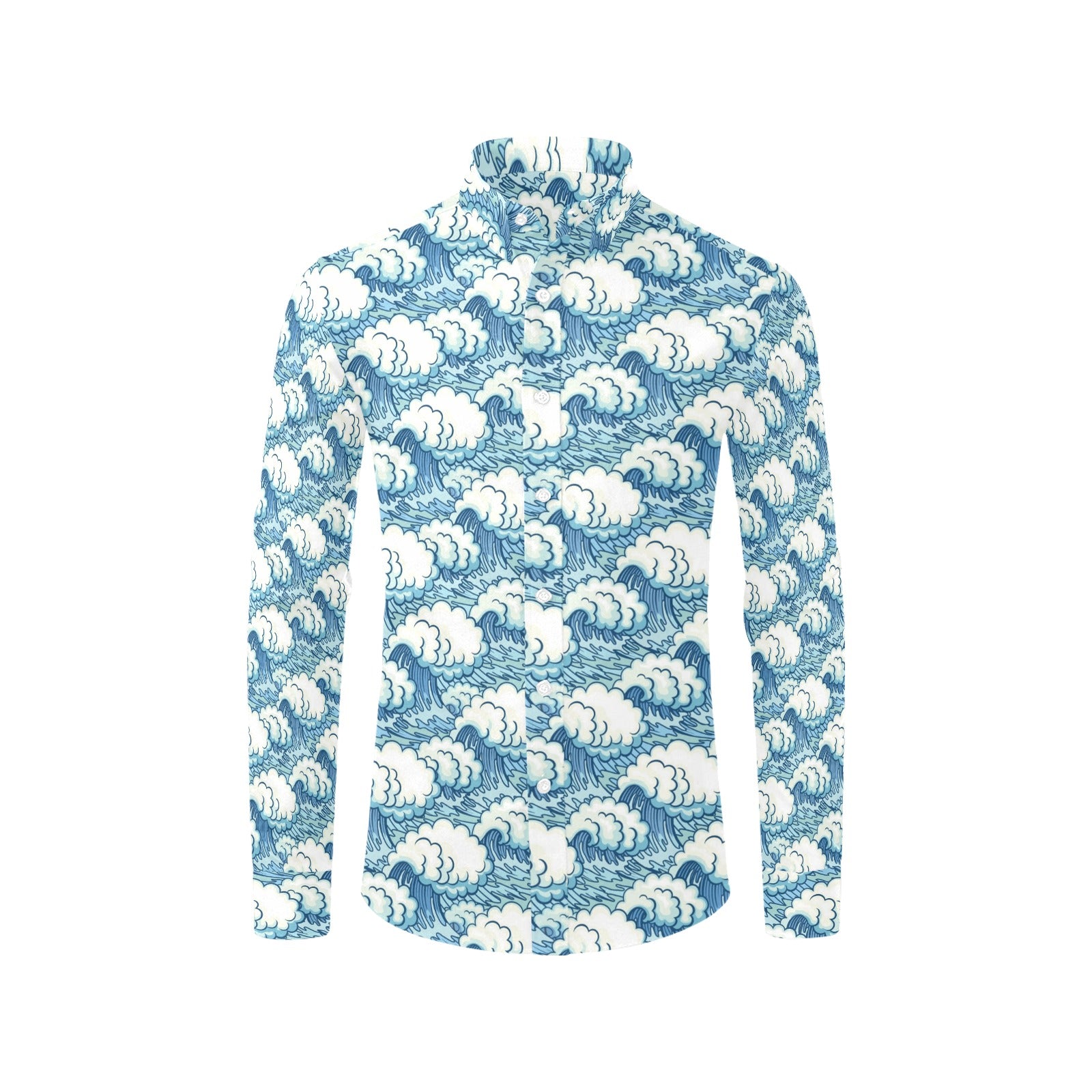 Wave Japan Style Print Design LKS304 Men's Long Sleeve Dress Shirt