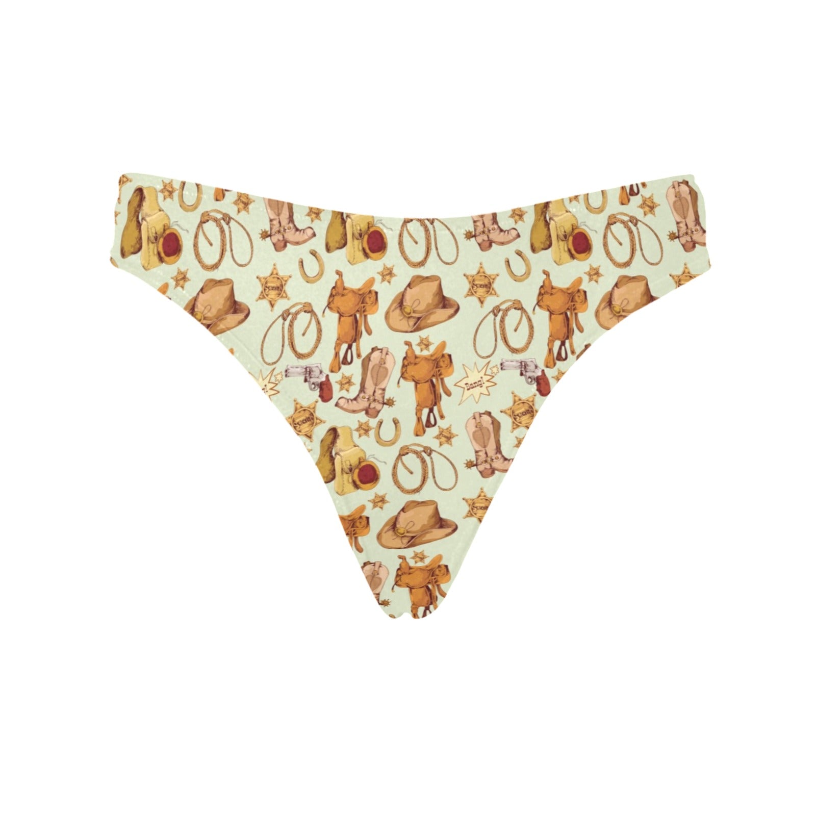 Western Cowboy Design Pattern Women's Thongsis custom-made-to-order and handcrafted to the highest quality standards.