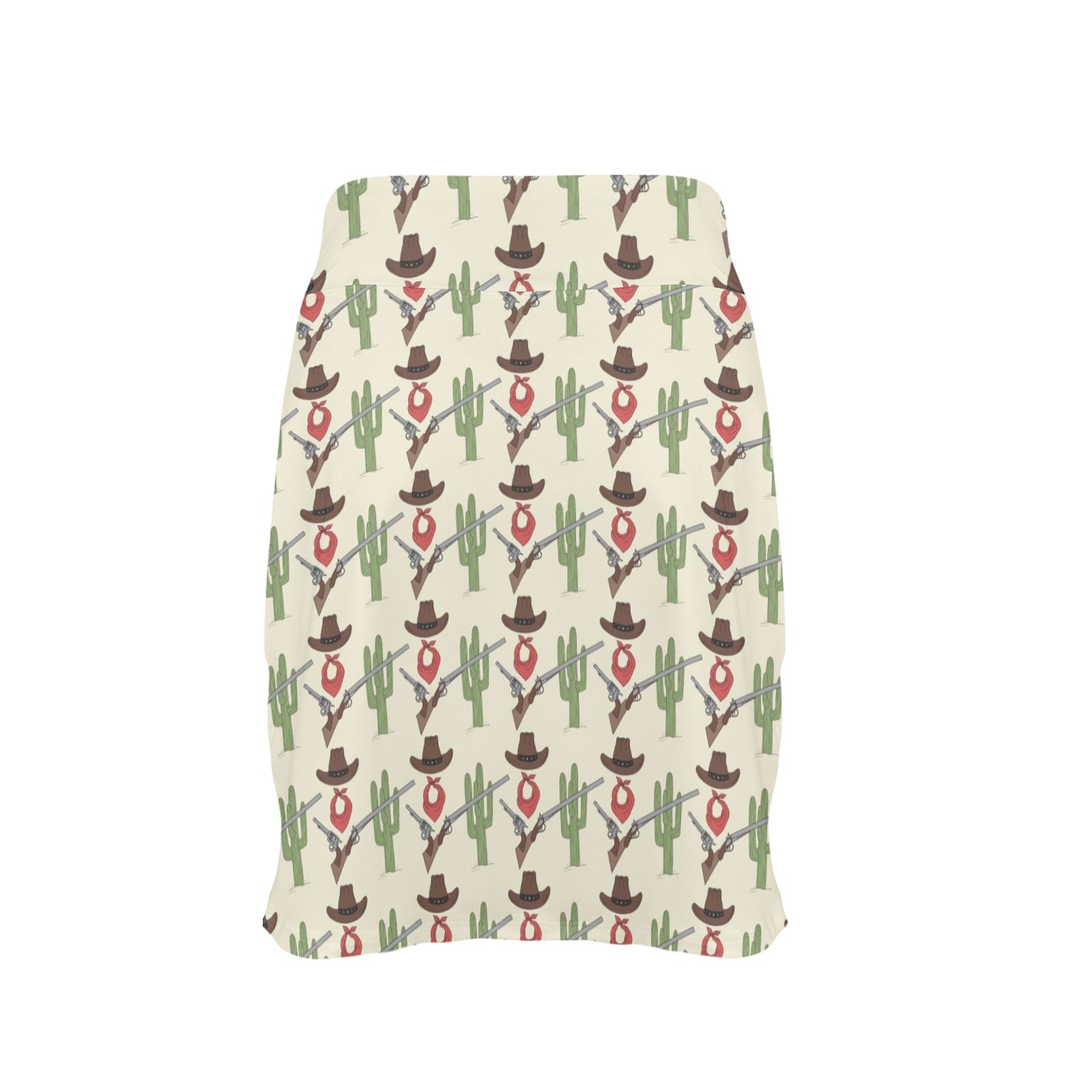 Western Cowboy Print Women's Golf Skirt with Pocket
