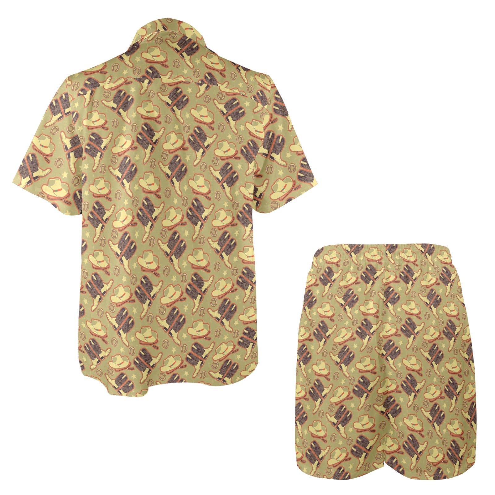 Western Cowboy Themed Men's Beach Shirt and Shorts Set