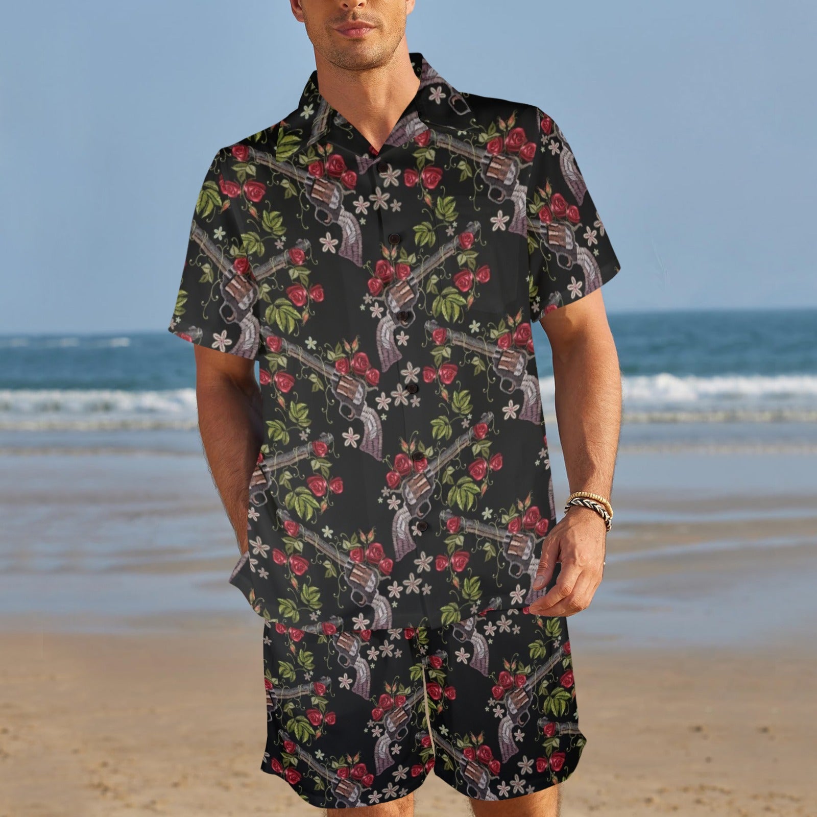 Western Design Men's Beach Shirt and Shorts Set. It is hand-cut and sewn just for your order! This process starts as soon as your order is placed and may have a processing time of 5-9 business days before it ships.