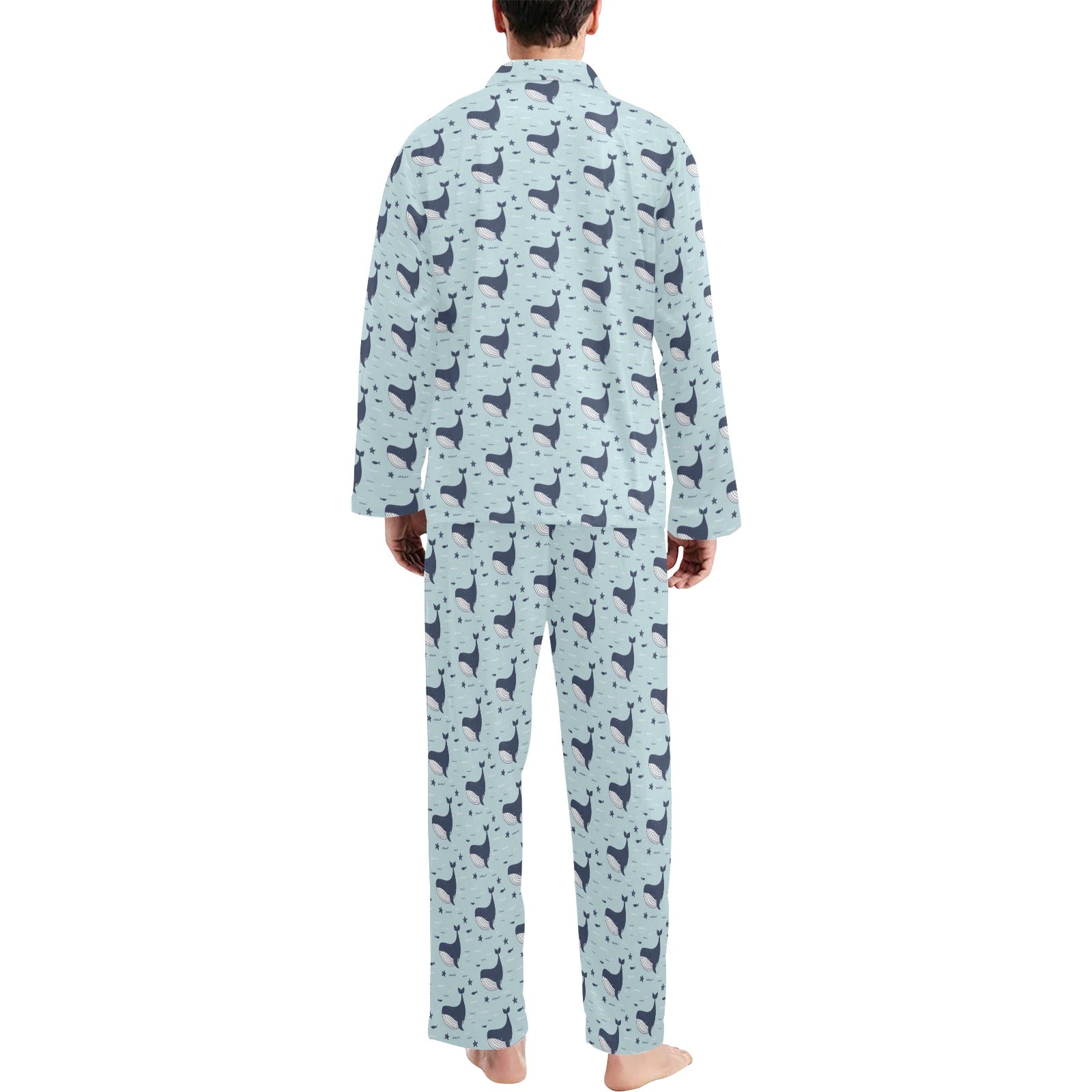 Whale Cute Design Themed Print Men's Long Pajama Set custom-made-to-order and handcrafted to the highest quality standards.