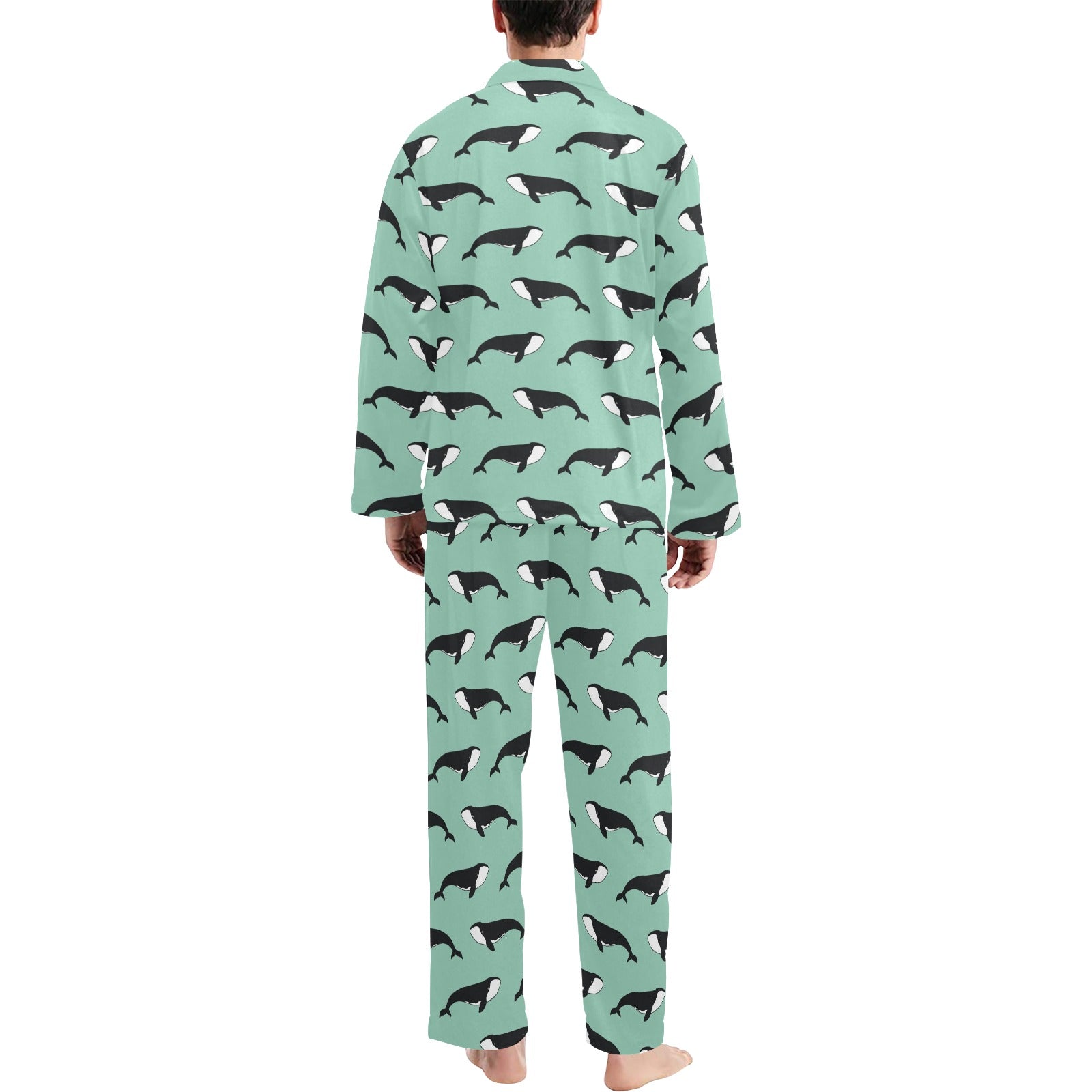 Whale Print Design LKS307 Men's Long Pajama Set custom-made-to-order and handcrafted to the highest quality standards.
