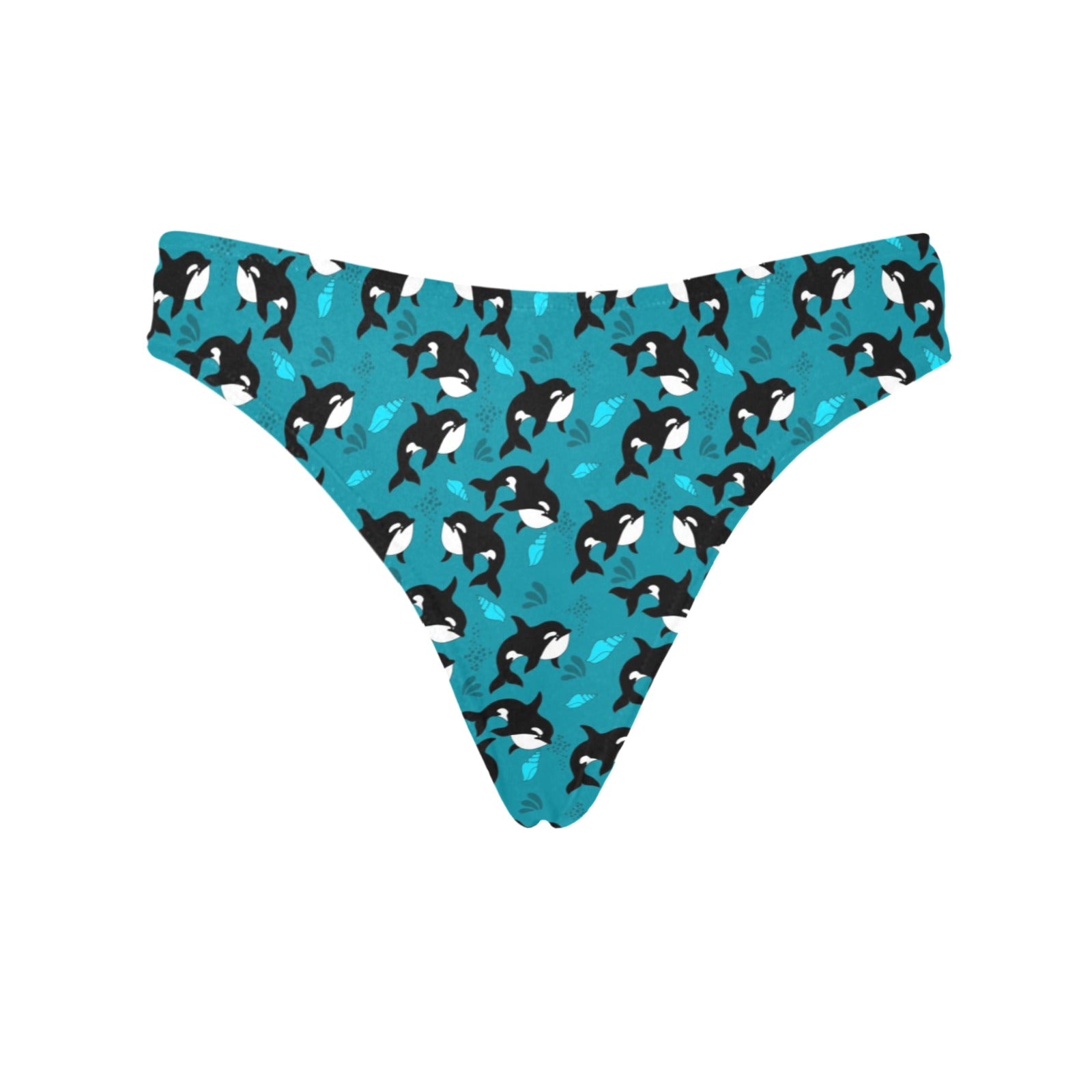 Whale Sea Design Themed Print Women's Thongsis custom-made-to-order and handcrafted to the highest quality standards.