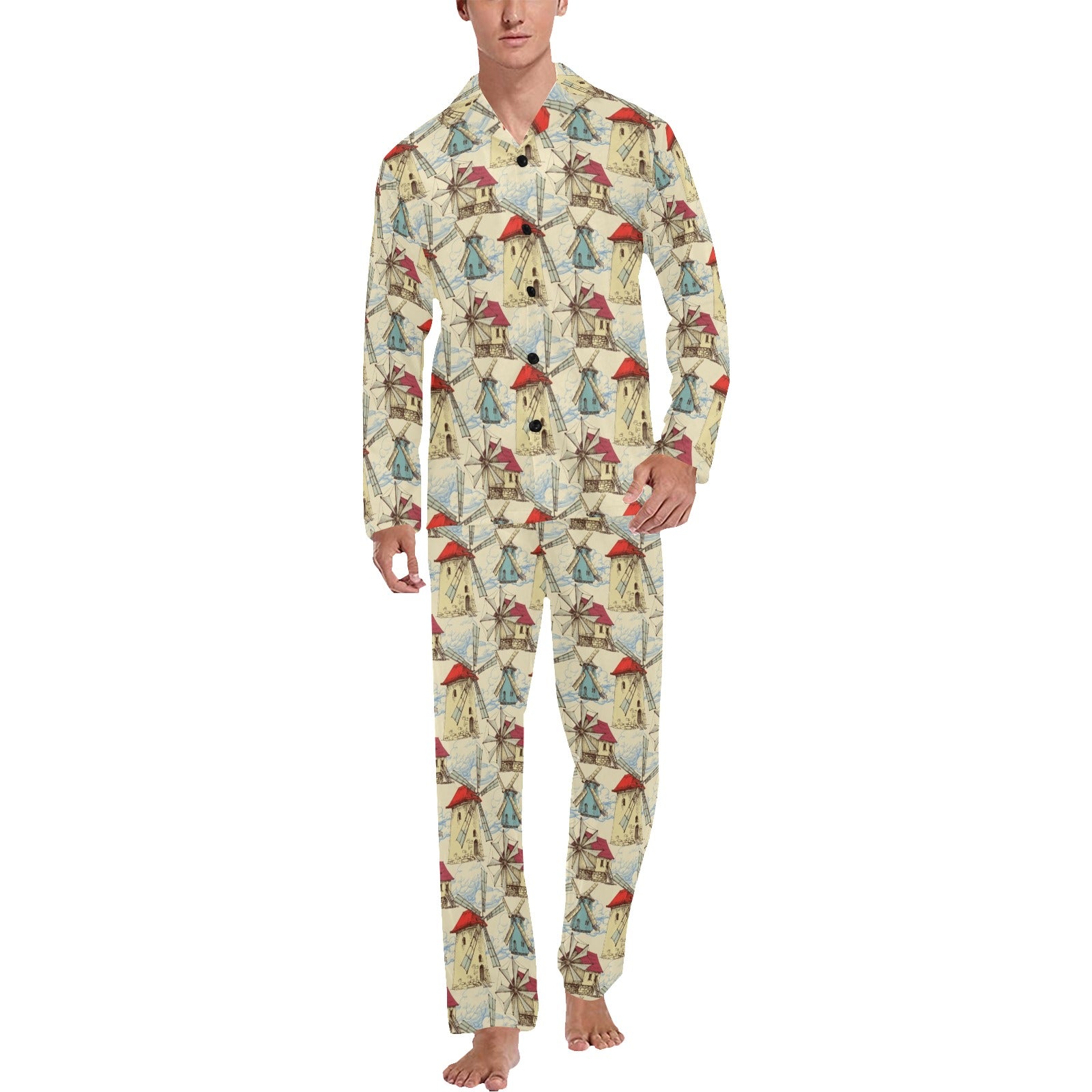 Windmill Pattern Print Design 01 Men's Long Pajama Set Made to Order Item. It is hand-cut and sewn just for your order! This process starts as soon as your order is placed and may have a processing time of 5-9 business days before it ships.