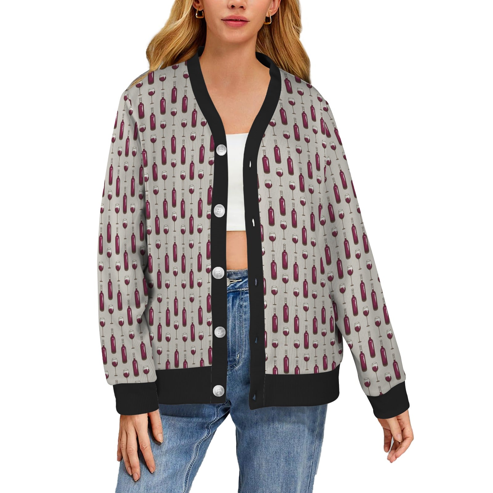Wine Bottle Pattern Print Women's Cardigan made-to-order and handcrafted to the highest quality standards.
