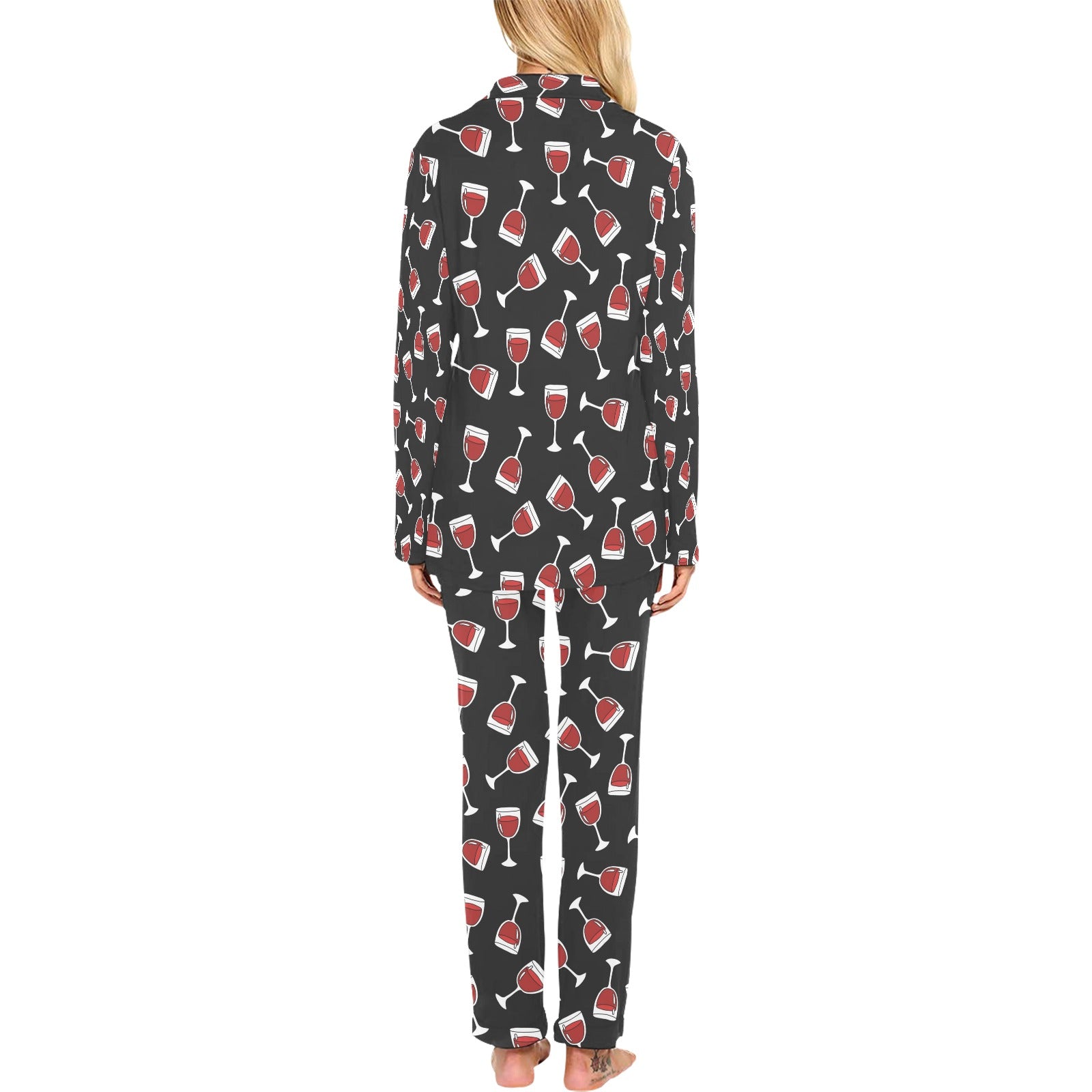 Wine Glass Print Design LKS303 Women's Long Pajama Set Made to Order Item. It is hand-cut and sewn just for your order! This process starts as soon as your order is placed and may have a processing time of 5-9 business days before it ships.