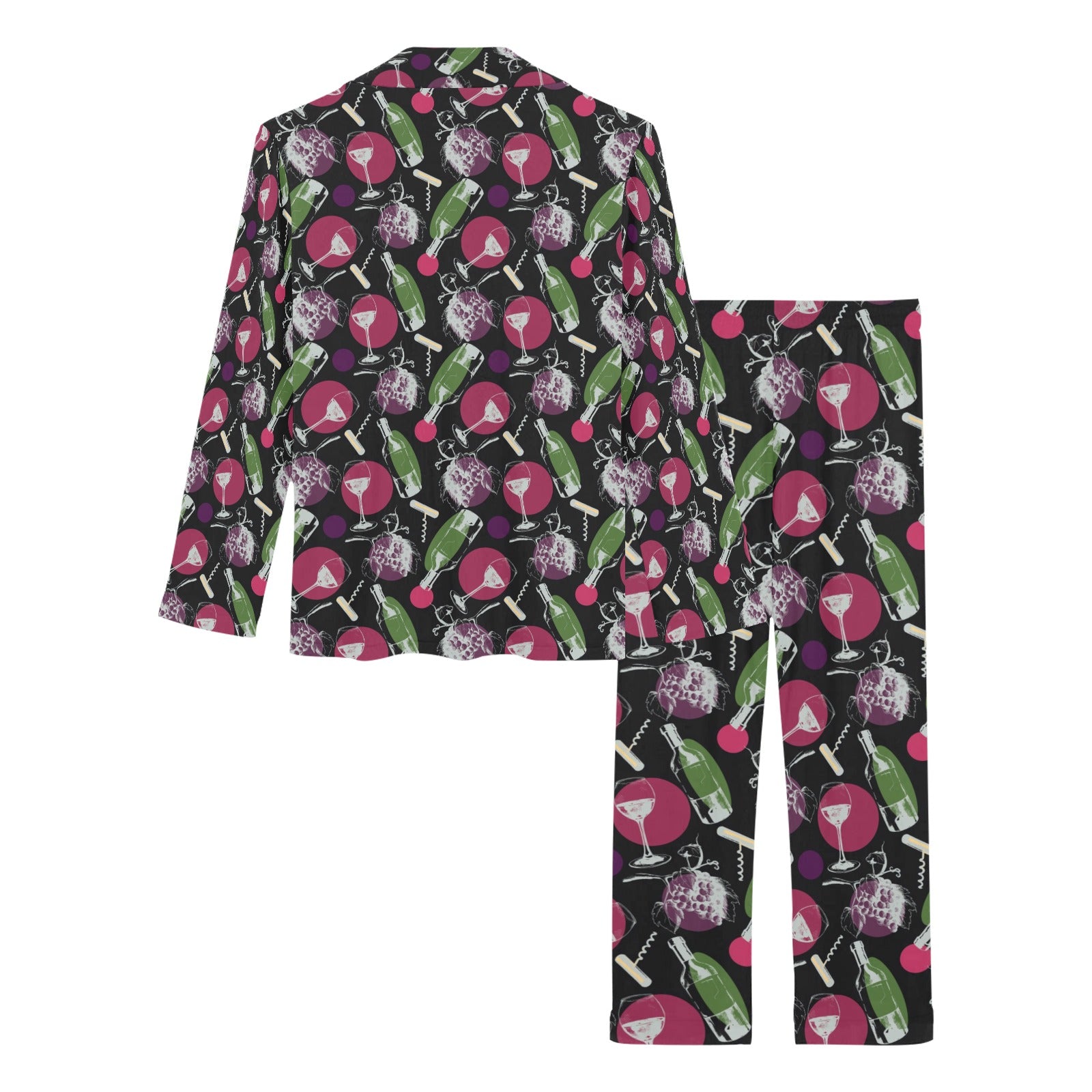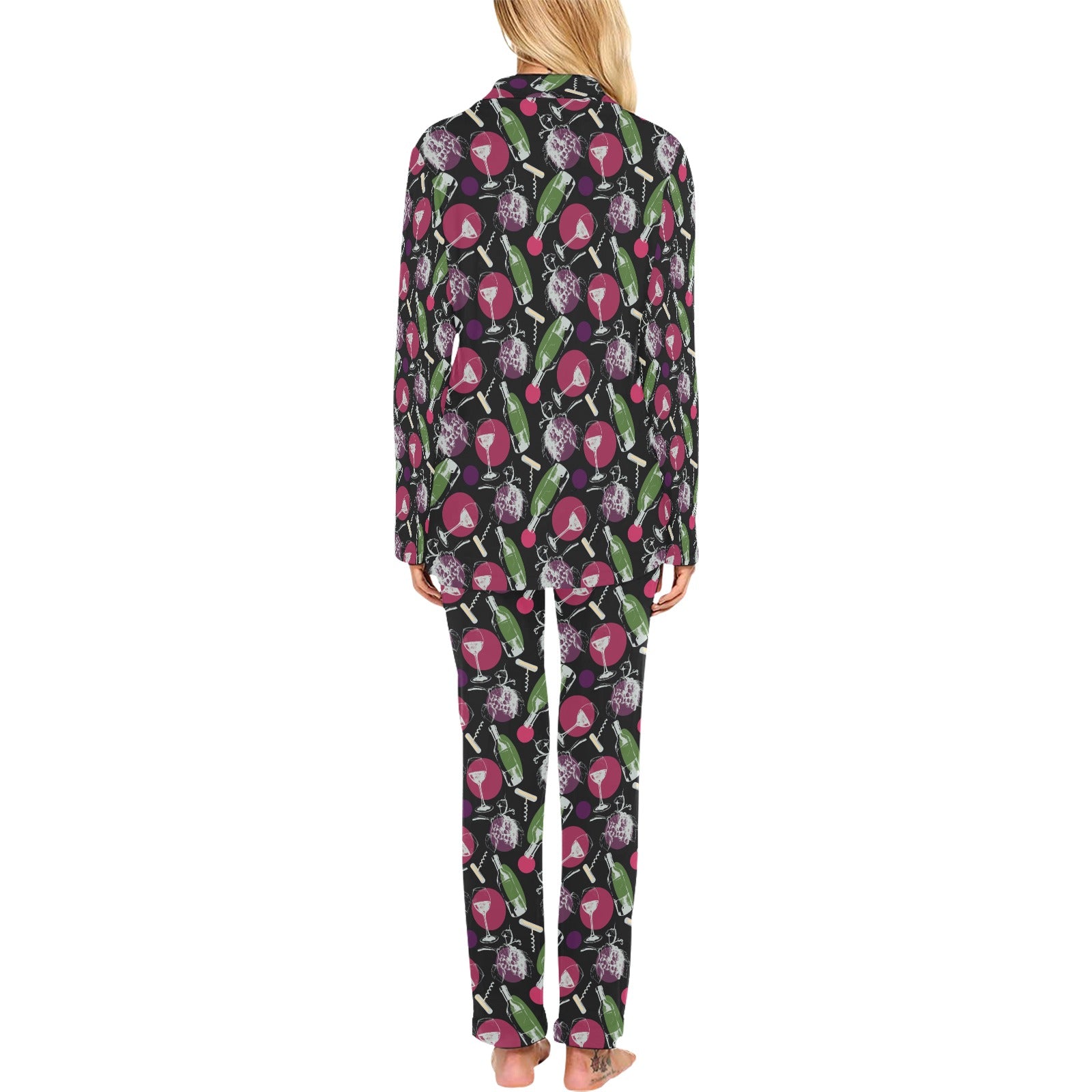Wine Print Design LKS307 Women's Long Pajama Set Made to Order Item. It is hand-cut and sewn just for your order! This process starts as soon as your order is placed and may have a processing time of 5-9 business days before it ships.