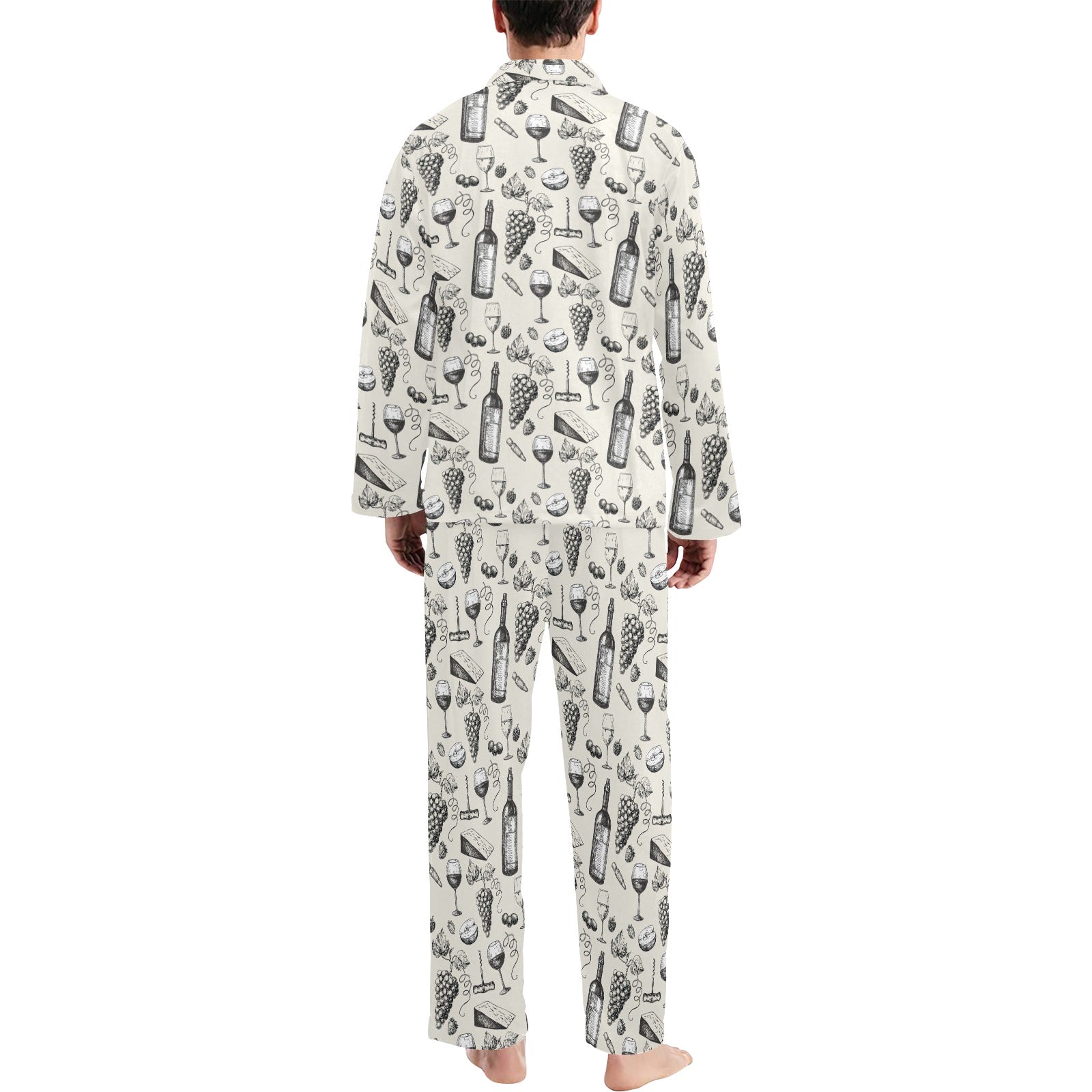 Wine Themed Print Design LKS306 Men's Long Pajama Set custom-made-to-order and handcrafted to the highest quality standards.