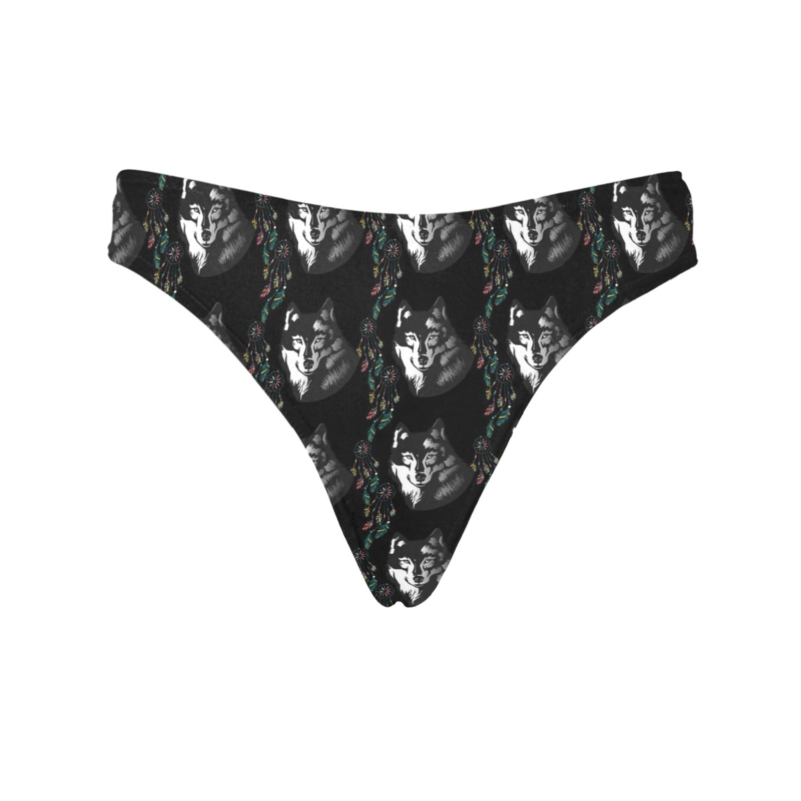Wolf Black Dream Catcher Design Print Women's Thongsis custom-made-to-order and handcrafted to the highest quality standards.