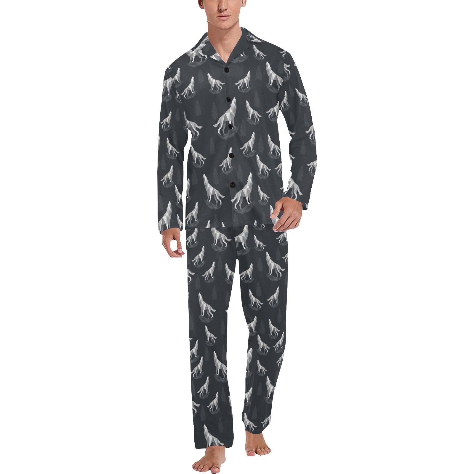 Wolf Print Design LKS303 Men's Long Pajama Set custom-made-to-order and handcrafted to the highest quality standards.