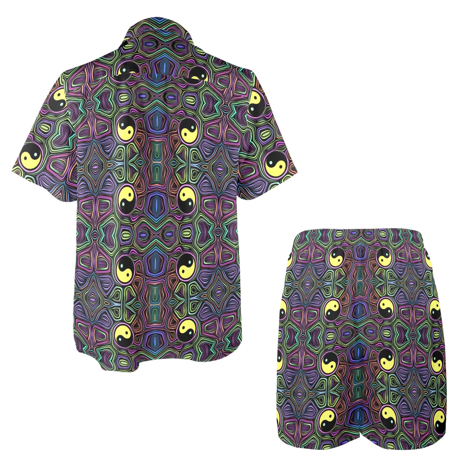 Yin Yang Neon Color Design Print Men's Beach Shirt and Shorts Set