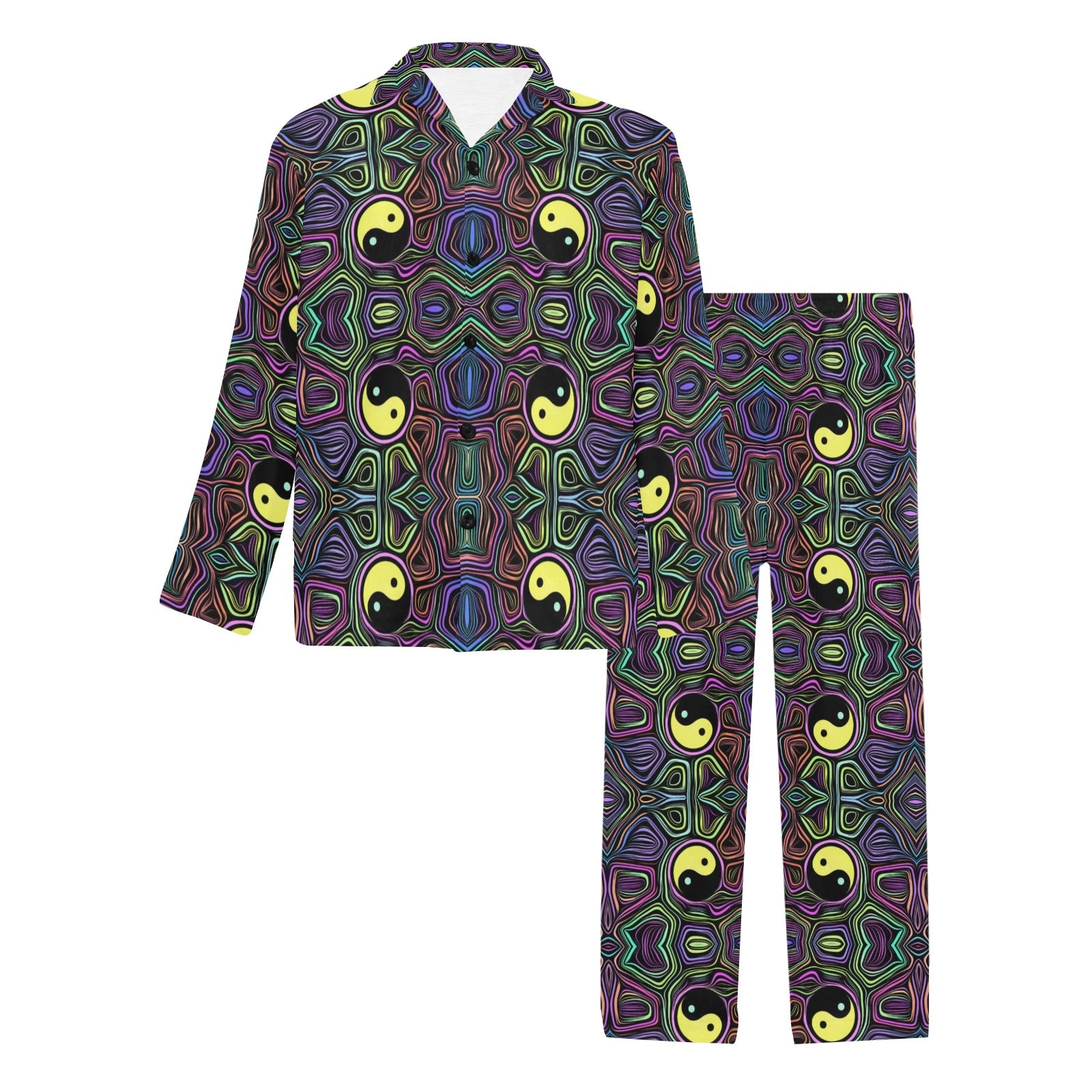 Yin Yang Neon Color Design Print Men's Long Pajama Set custom-made-to-order and handcrafted to the highest quality standards.
