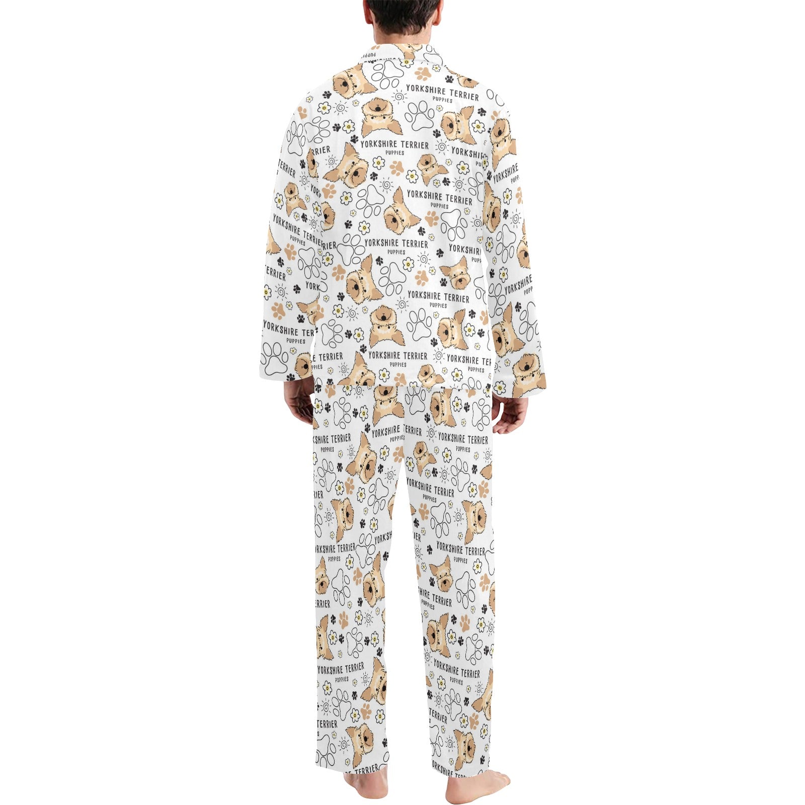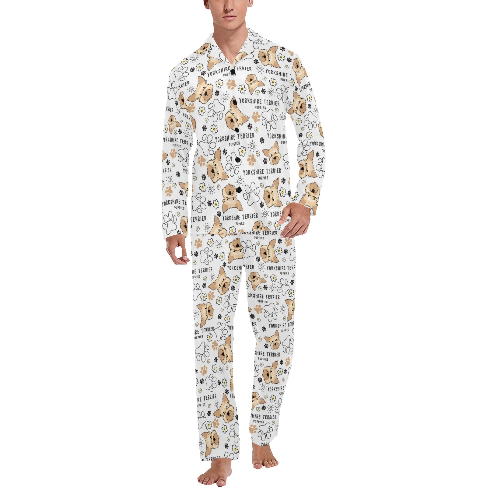 Yorkshire Terriers Print Design LKS308 Men's Long Pajama Set custom-made-to-order and handcrafted to the highest quality standards.
