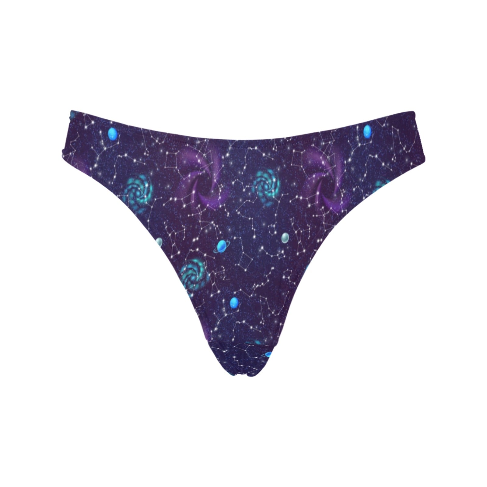 Zodiac Galaxy Design Print Women's Thongsis custom-made-to-order and handcrafted to the highest quality standards.